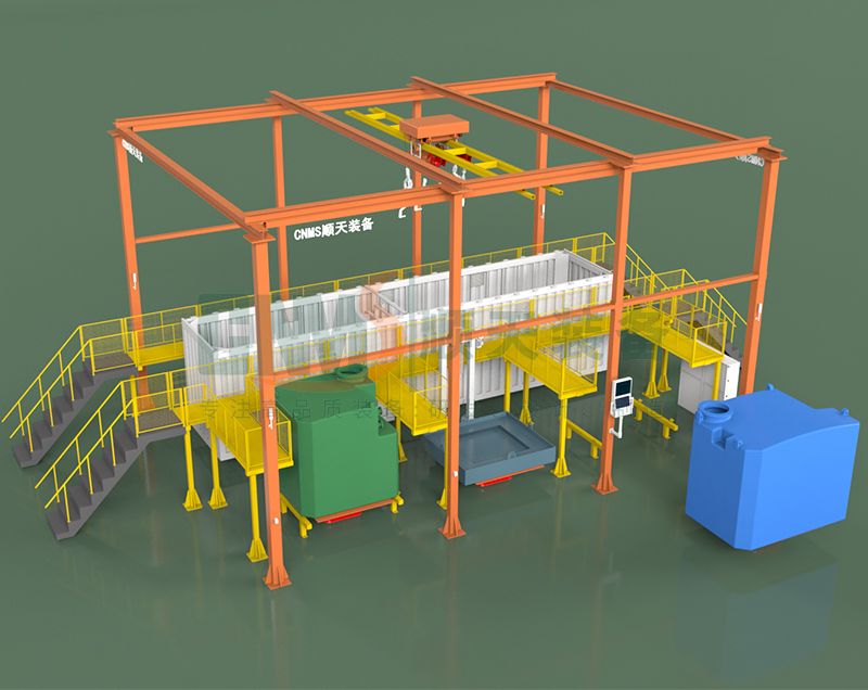 The liquid storage tank installation workstation reserves two liquid storage tank stations, the liquid storage tanks can be installed alternately, and at the same time, it is suitable for different sizes of liquid storage tanks, and the installation of TPU bags is completed by two sets of hooks with relative movement, which can be completed by the operator with the push of a button. The workstation for removing, storing and installing capacity container lids integrates several functions into one and accomplishes the removing, storing and installing of container lids in a one-stop manner. The whole process is completed automatically, and there is a station reserved behind the workstation for pasting thermal insulation cotton, so that the thermal insulation cotton can be pasted on the container cover before storage.
