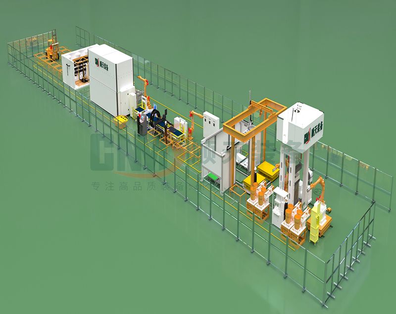 The integrated line encompasses all processes: raw material storage, bipolar plate cleaning, visual inspection, dispensing, gasket application, end plate/bipolar plate/membrane electrode assembly (MEA) conveyance and stacking, flexible assembly, hydraulic servo stack pressing, automatic locking screw insertion, fixture auto-positioning, leak testing, laser marking, and finished product unloading. It supports rapid changeovers and production capacity expansion. The line achieves precise positioning through high-rigidity carriers, combined with servo-driven stacking and automated bolting technology to ensure stacking accuracy and assembly quality. All process data is monitored and recorded throughout by the MES system, enabling production informatization and quality traceability. The system is characterized by rigorous processes, stable operation, and outstanding efficiency.